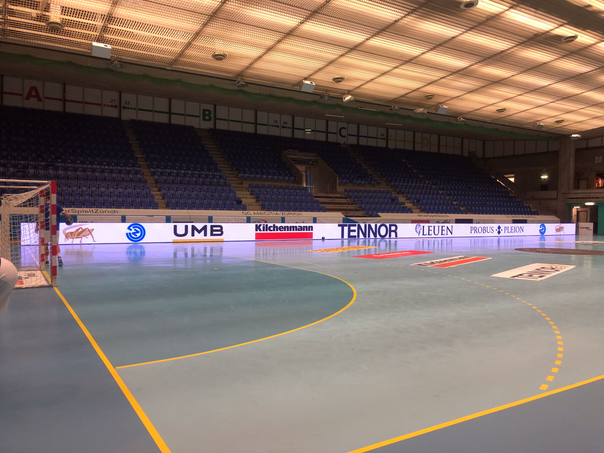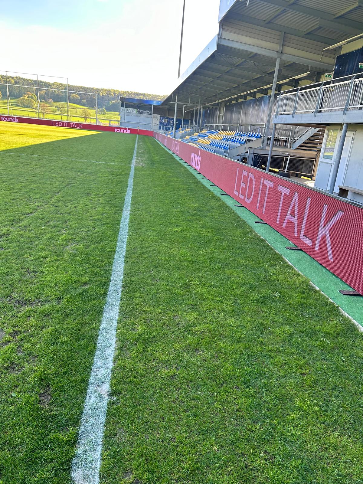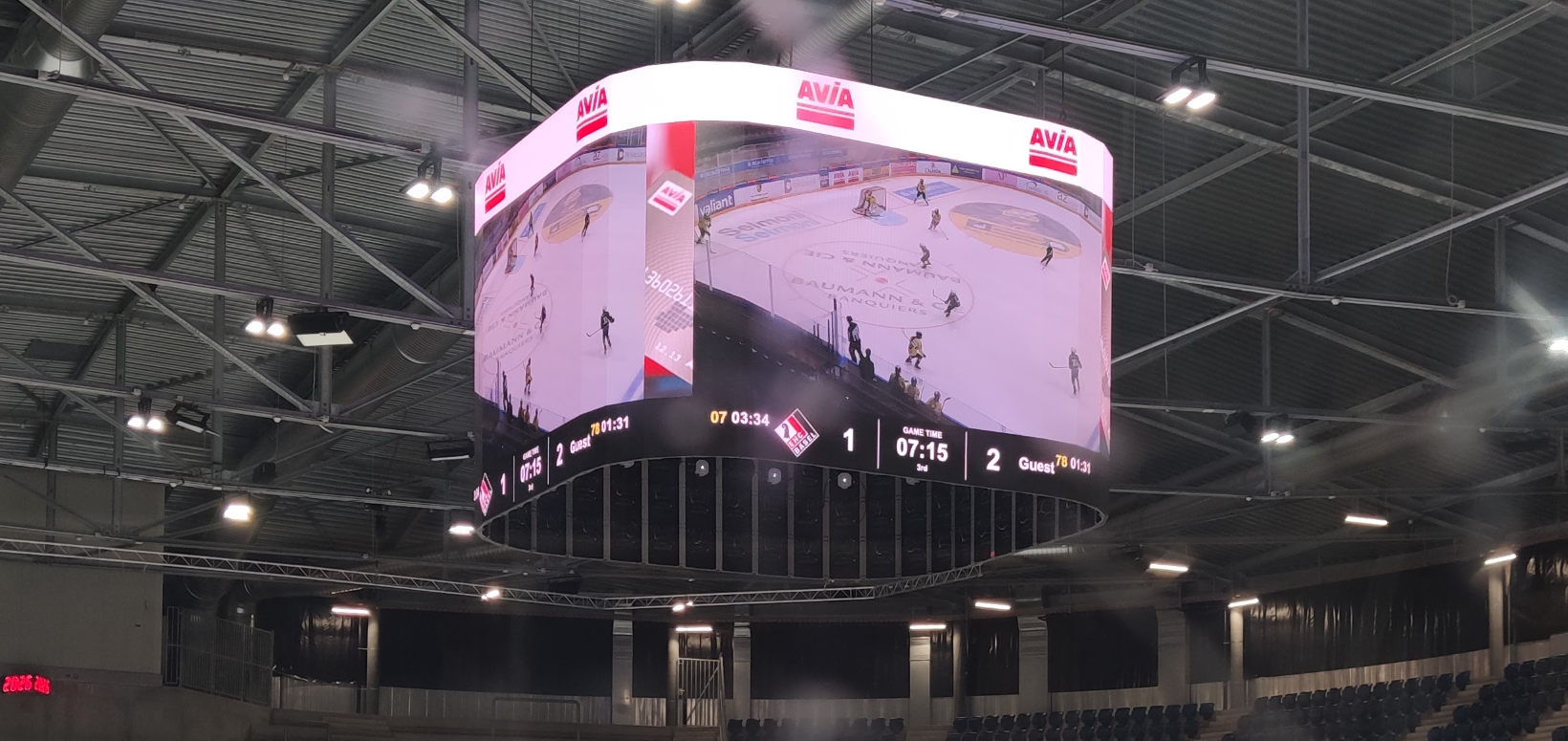 Banden, 2x Indoor Screen, 1x Outdoor Screen und Playout System