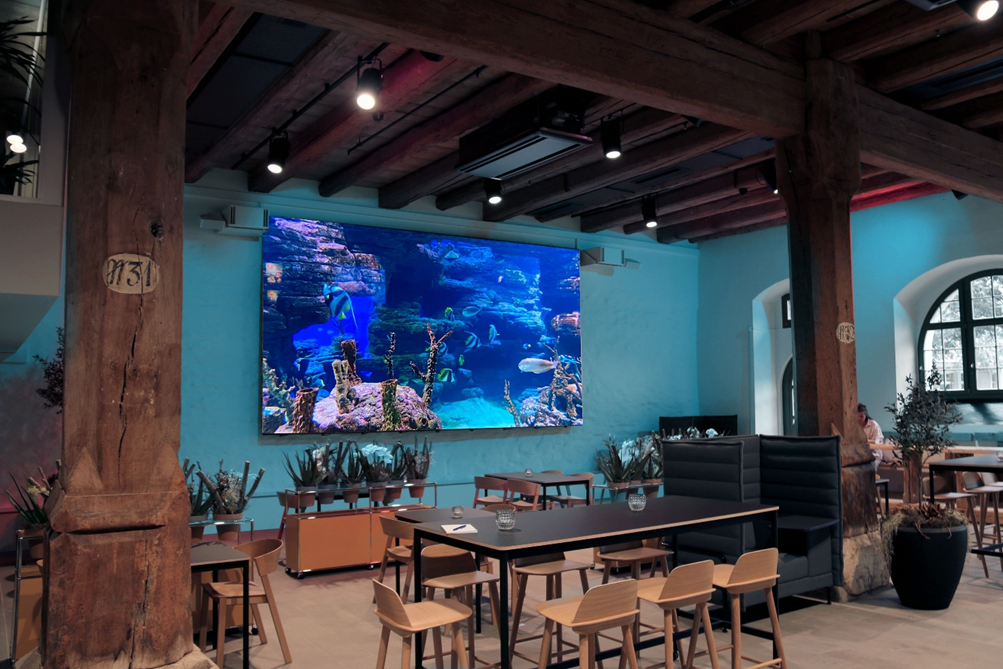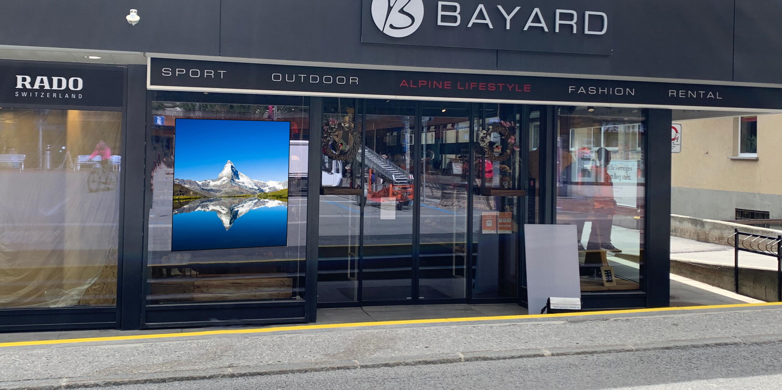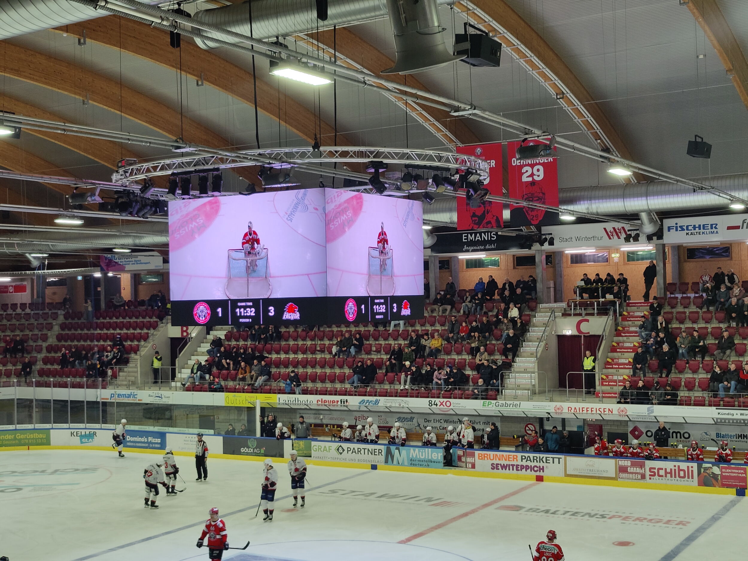 Banden, 2x Indoor Screen, 1x Outdoor Screen und Playout System